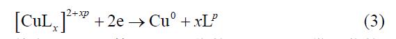 其中,L 是配體,x 是配位數(shù),p 是L 所帶電荷數(shù)。 總反應(yīng):