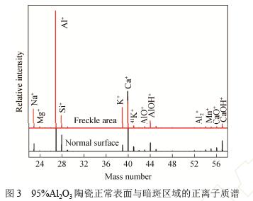 2.3 95%氧化鋁陶瓷表面暗斑區(qū)質(zhì)譜分析