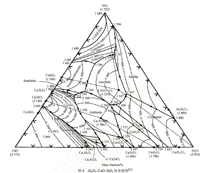 當(dāng)MgO 含量較高時,析出相為鎂硅酸鹽、鋁硅酸 鹽以及富含鈣的長石相。當(dāng)CaO 含量較高時,析出 相為鈣長石CaAl2Si2O8、鈣鋁黃長石Ca2Al2SiO7、 鈣鋁榴石Ca3Al2Si3O12、鎂鋁榴石Mg3Al2Si3O12、六鋁酸鈣CaAl12O19 和尖晶石MgAl2O4??梢?,鈣 鋁黃長石Ca2Al2SiO7以及與(Na,K)AlSi3O8結(jié)構(gòu)相似 的鈉長石NaAlSi3O8、鈣長石CaAl2Si2O8 在其它高 鋁瓷中也是常見析出相。